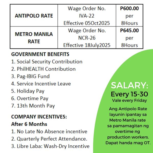 Huwag umasa sa overtime. Merong overtime pero hindi guaranteed na araw-araw merong overtime. Kung hindi sasapat, aming naiintindihan, move-on at mag apply sa iba.